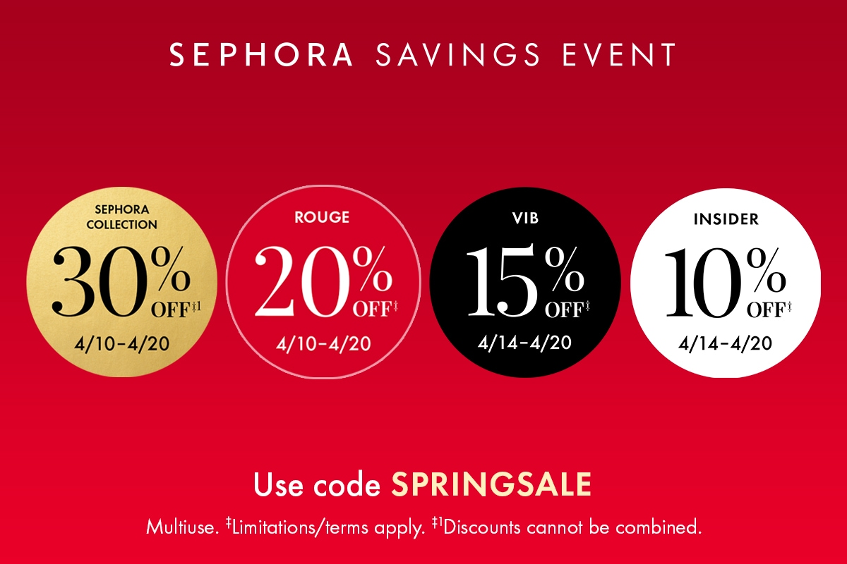 The Sephora Savings Event is here—enjoy up to 20% off top prestige brands (that rarely go on sale) when you use code SPRINGSALE at checkout! Plus, everyone can score an extra 30% off all Sephora Collection items with the same code.