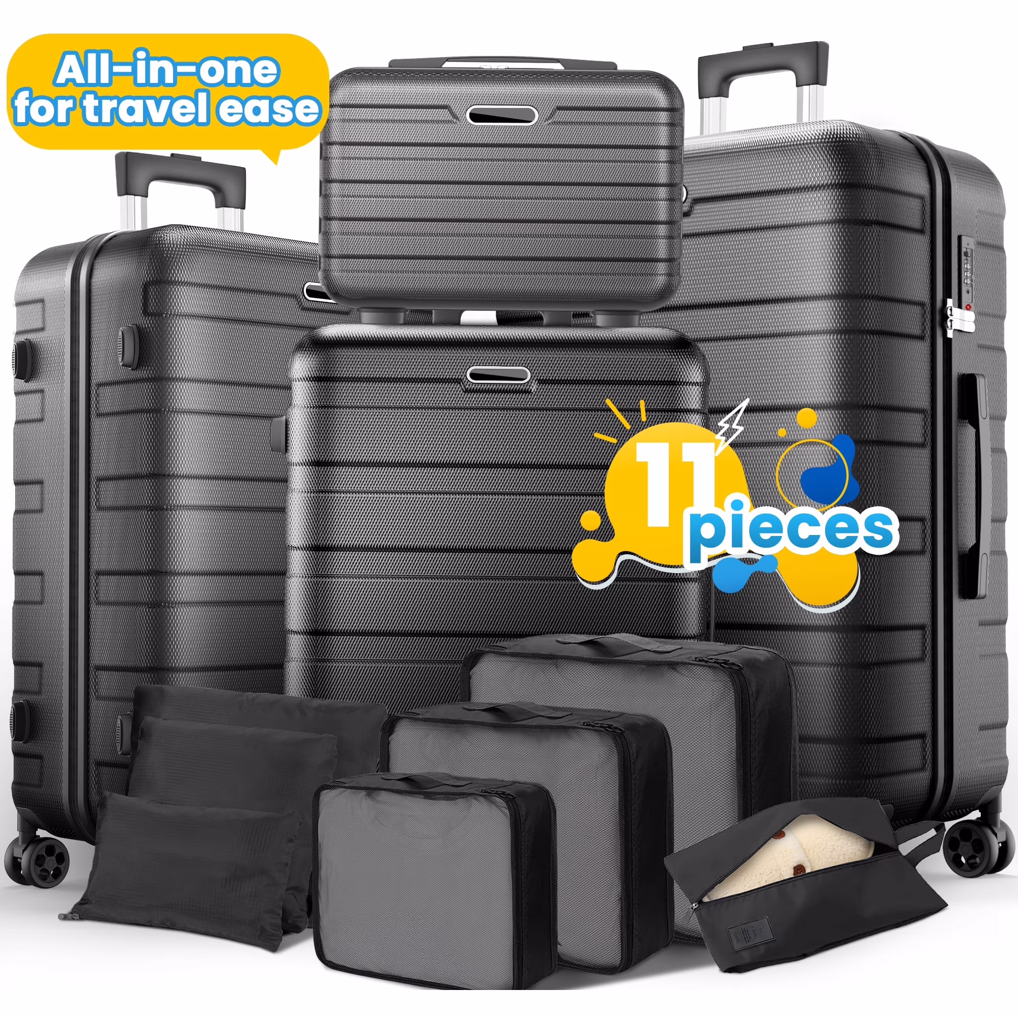 11Pcs Hardshell Luggage Set, Lightweight Suitcases w/ Spinner Wheels, Carry on Luggage.